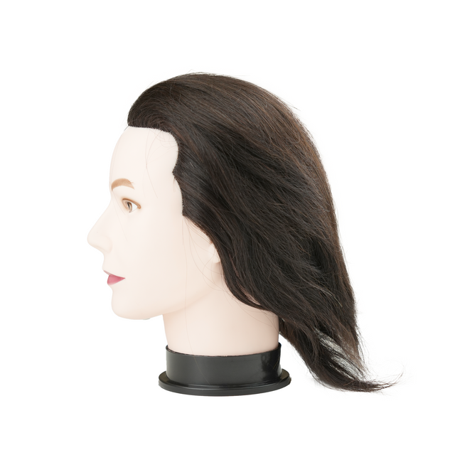 Introducing the ELV8 M3 Mannequin, the perfect tool for refining your hairstyling skills. Made with 100% real hair, this mannequin features a true size head with dark brown hair providing a realistic experience for both professionals and students.